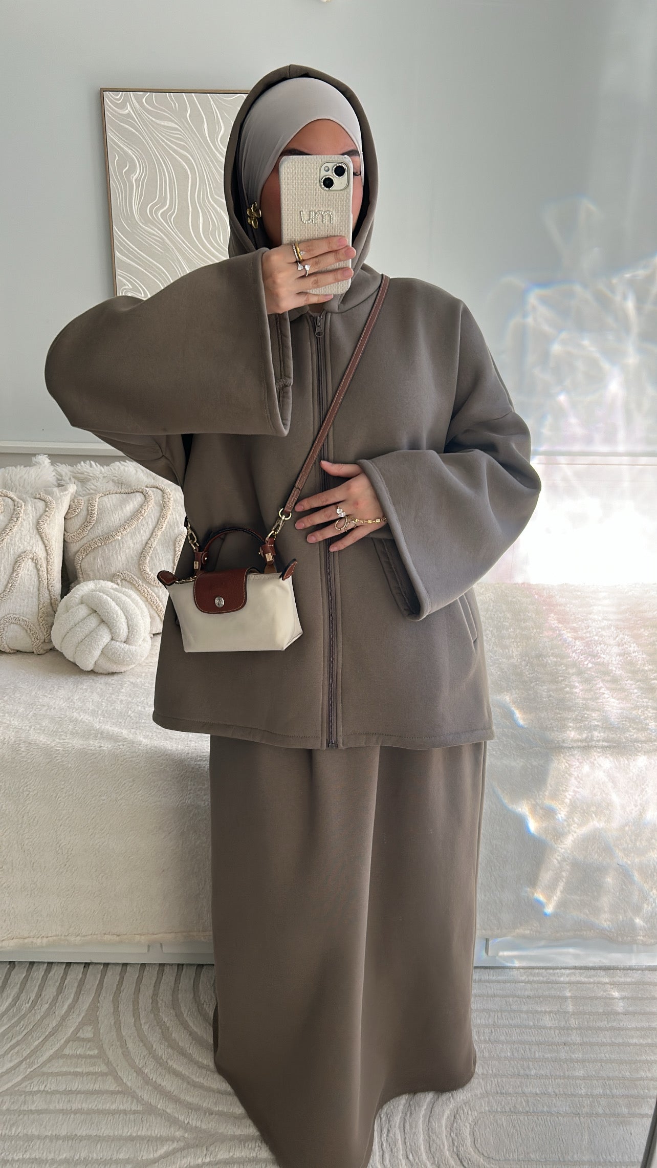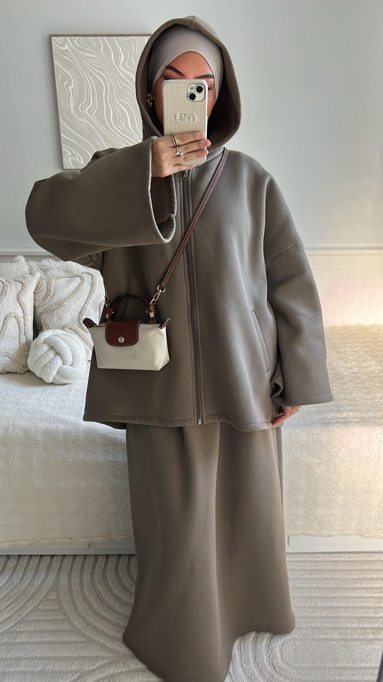 Ensemble sweat oversize a poche , poche intégré dans la jupe , intérieur polaire