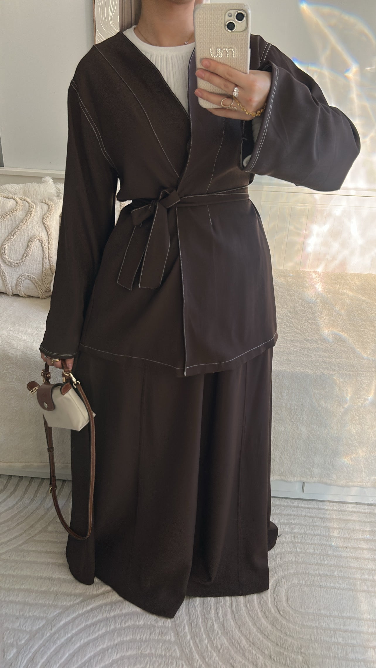 ensemble kimono surpiqûre blanche ,sa jupe longue et une ceinture. Ensemble large et léger