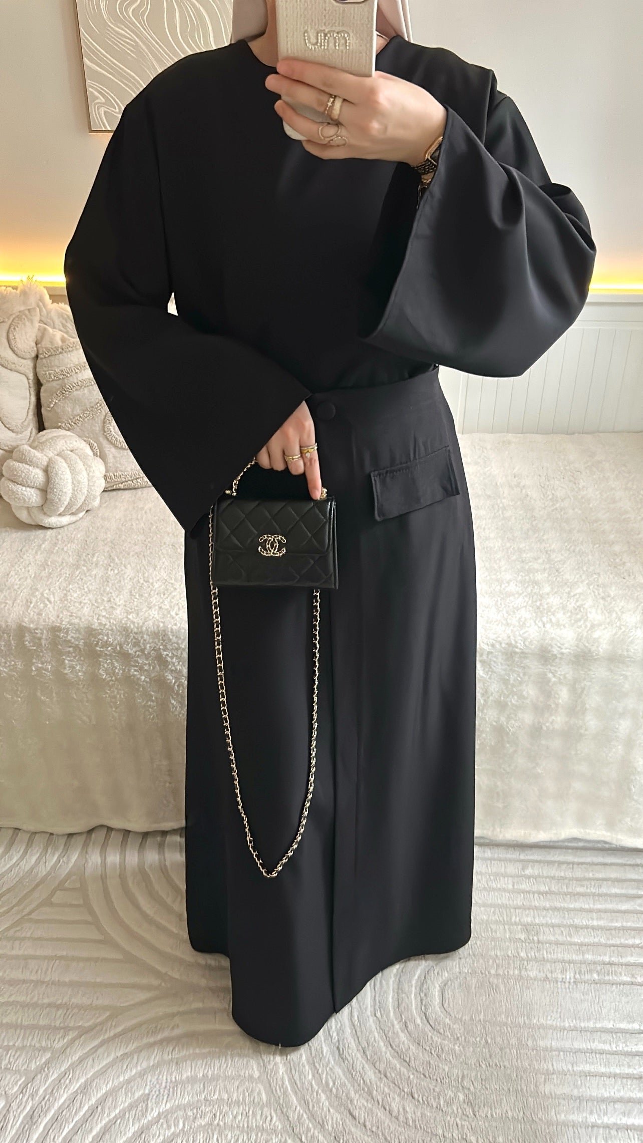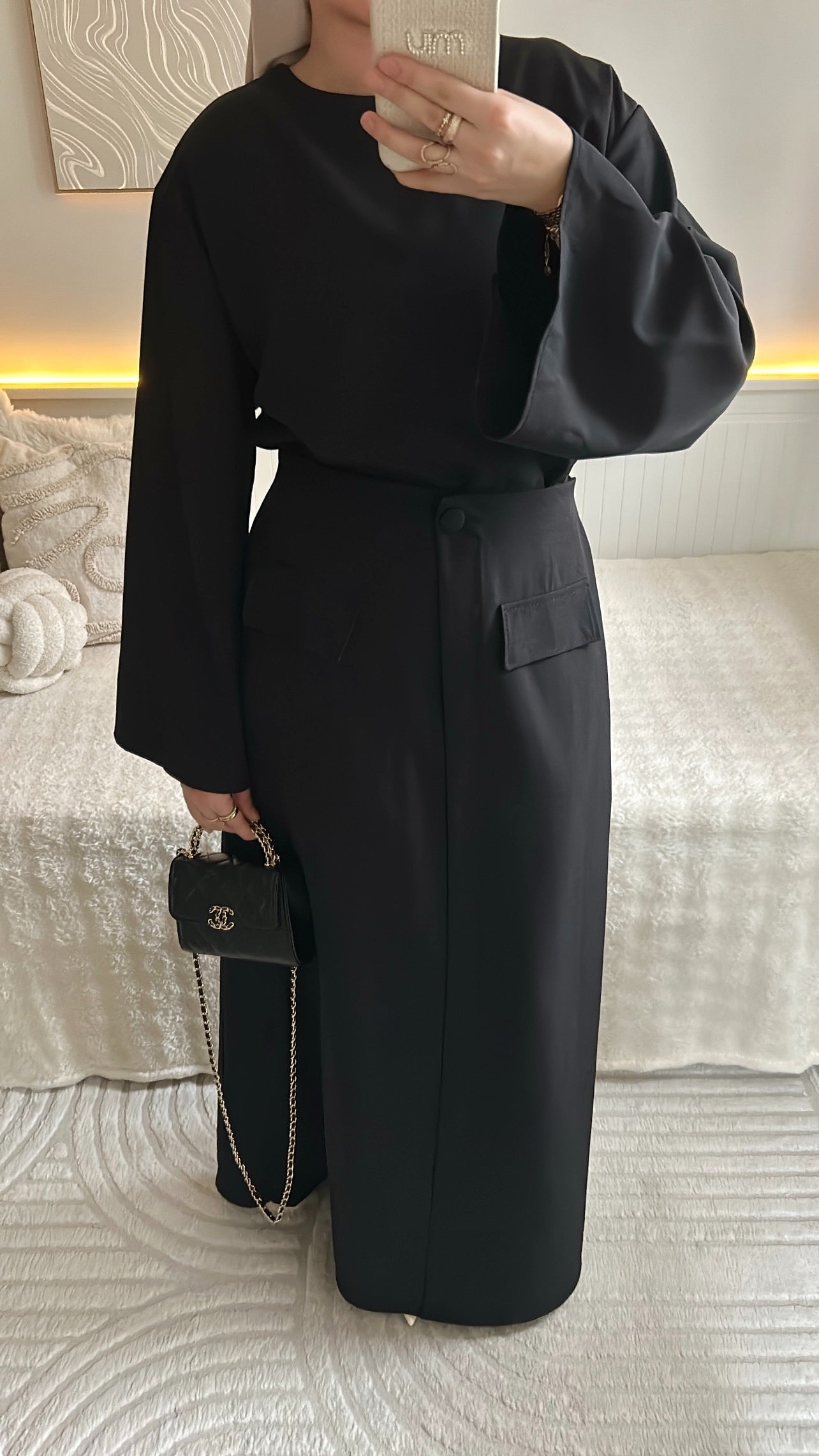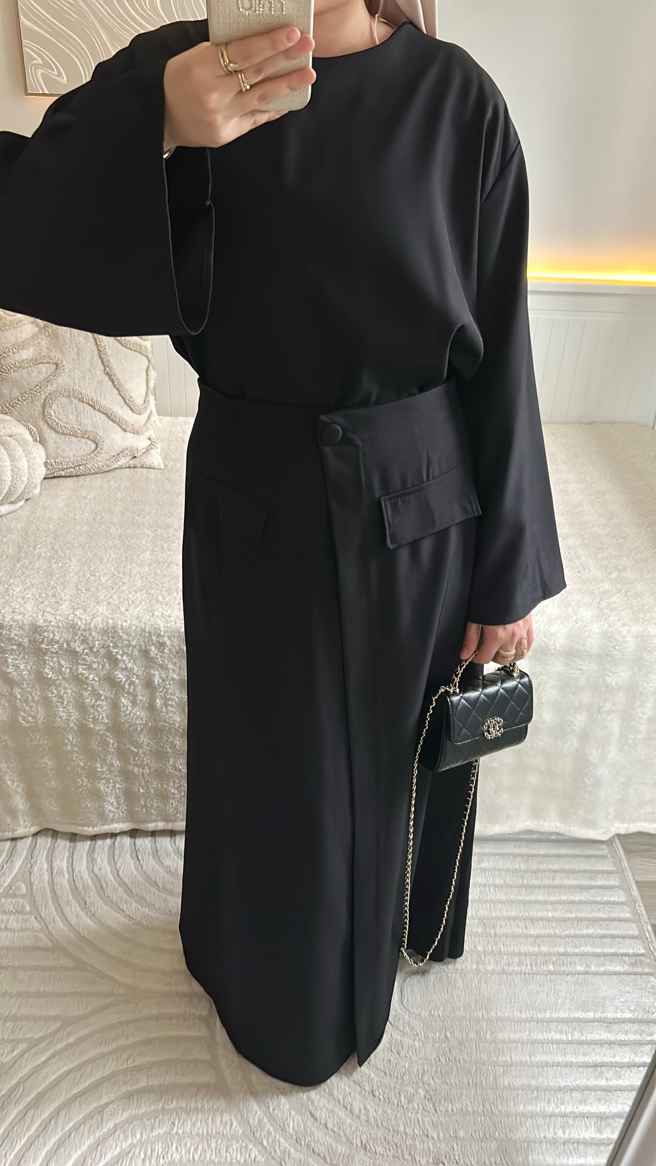 Ensemble haut large manche longue + jupe à poche avec effet fente fermer