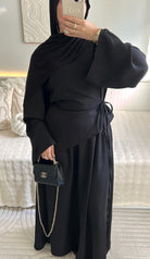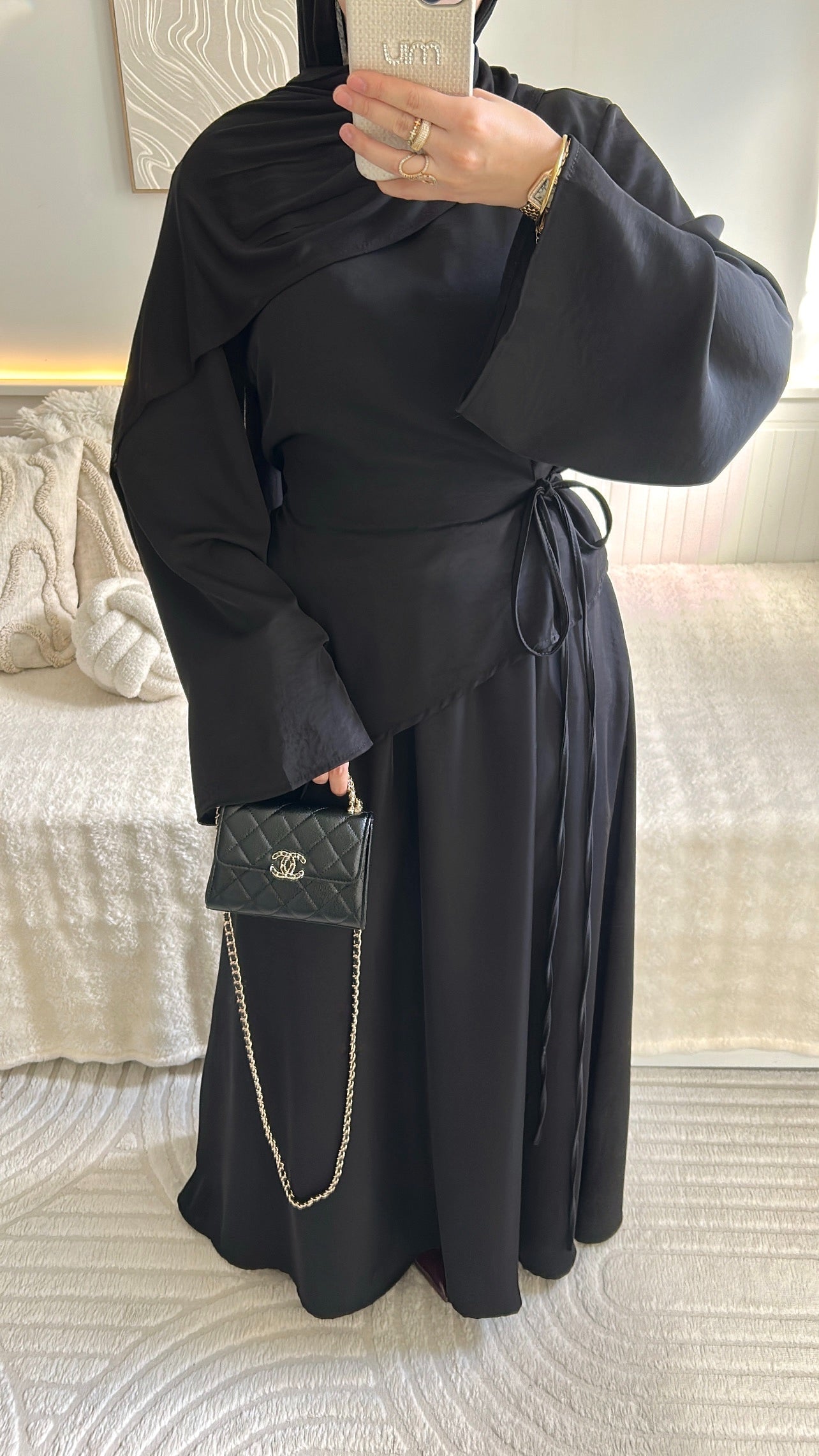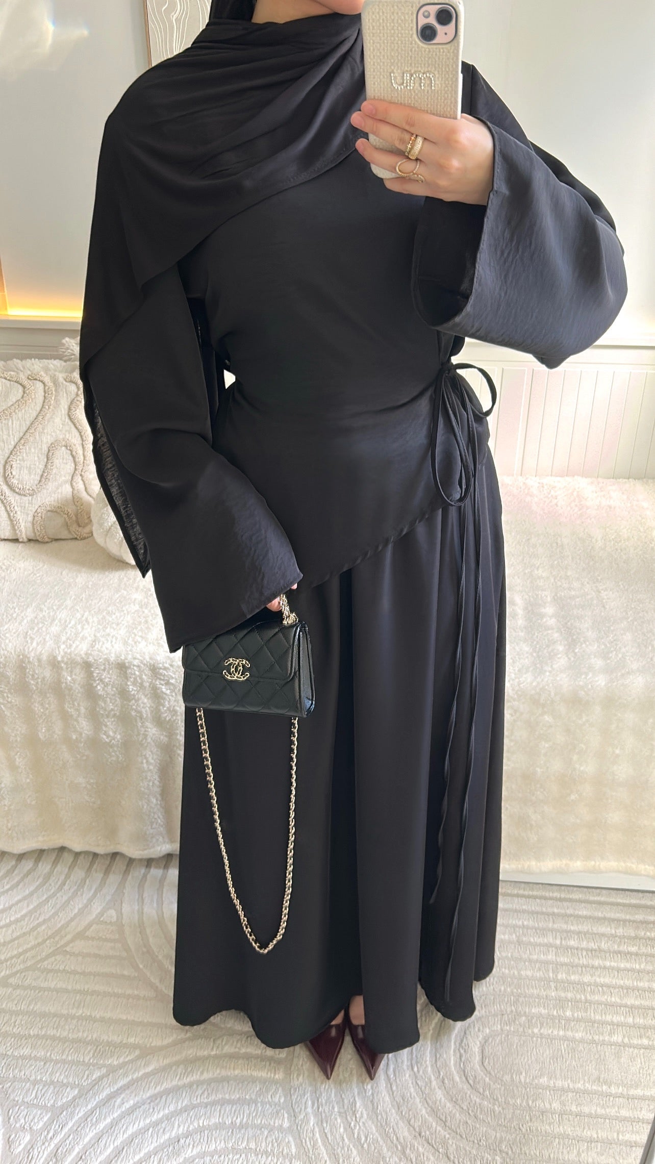 Ensemble jupe fluide & sont haut asymétrique avec noeud ajustable